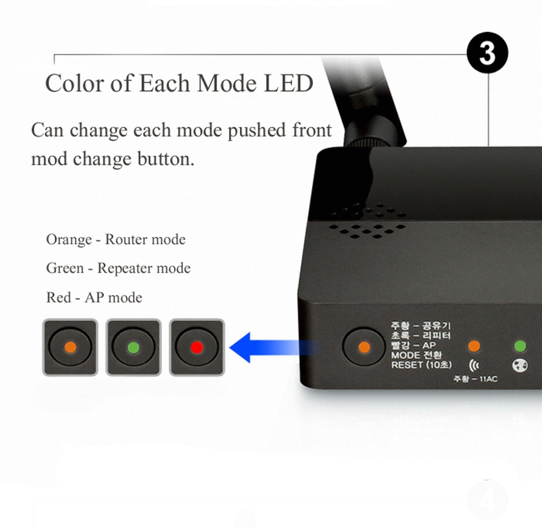 - D-Link One Touch - Download at paly store. You can basic setting in your smartphone. (Refer to image page 2 for details.) / Color of Each Mode LED - Can change each mode pushed front mod change botton. ( Orange -Router Mode / Green - Repeater Mode / Red - AP mode )