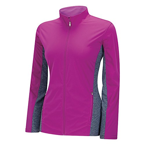 adidas Golf Women's Advance Climastorm Wind-Knit Full Zip Jacket, Flash Pink/Midnight Ink Heather, X-Large