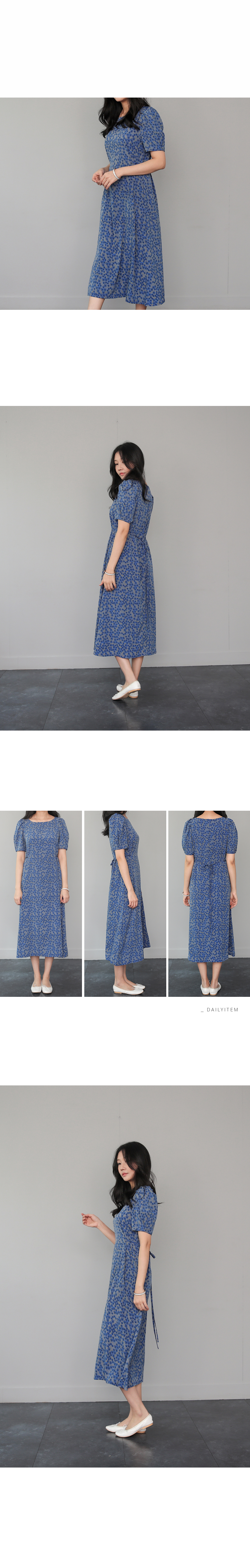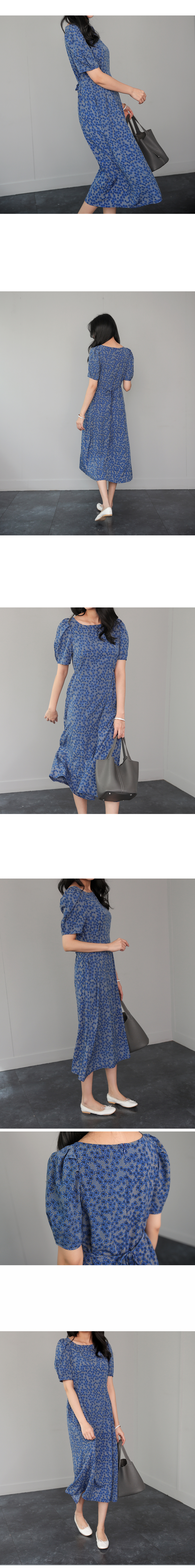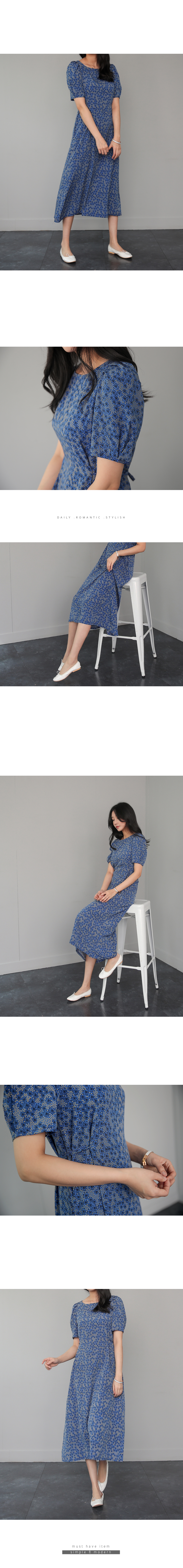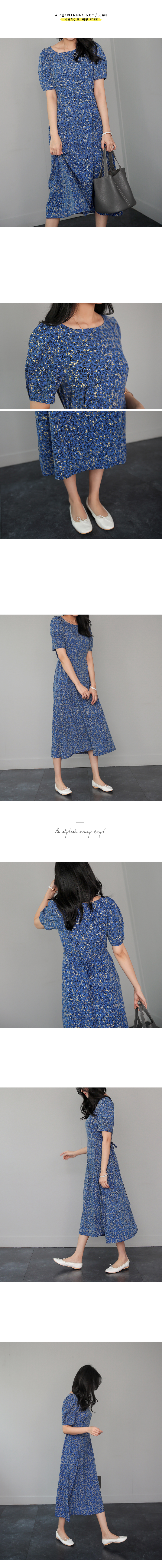 차르르 날리는 부드러운 폴리에스테르 소재와 컬러감이 돋보이는 잔잔한 나염이 시선을 끄는 여성스러운 패턴의 원피스에요 어깨선에서 연결되는 퍼프라인의 소매는 둥글게 반소매로 여성스러움을 더해주고 허리선에서 리본으로 사이즈에따라 묶어 강조하는 스타일로 밑단에서 A라인으로 퍼져 전체적인 라인이 너무 예쁘답니다 무릎을 덮는 롱한 길이감으로 차려입은듯 데이트룩, 하객룩으로 좋아요 색상은 블루, 그린 사이즈는 FREE 44~66반
