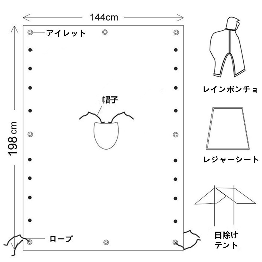 Size: 105 x 140 (when using a poncho) about 144 x 198 cm (when spreading)
