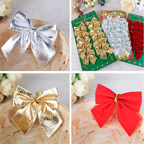 MCpinky 36 PCS Gold Silver Red Tree Bows Mini Christmas Ribbon Bows for Christmas Tree Presents Decorations Charms Ornaments