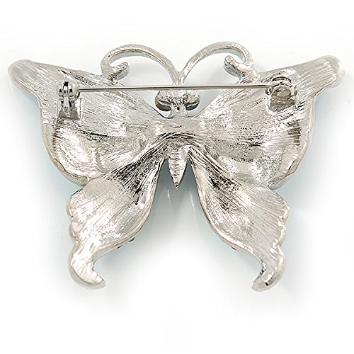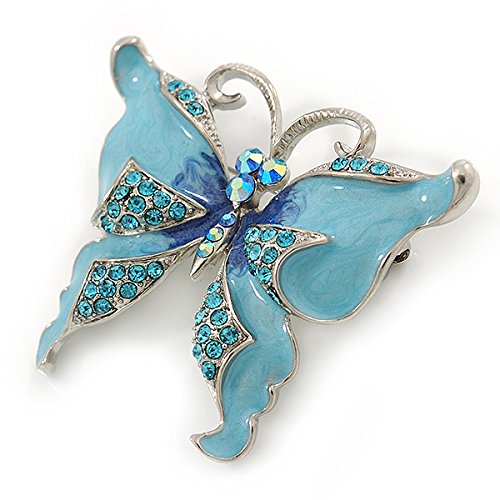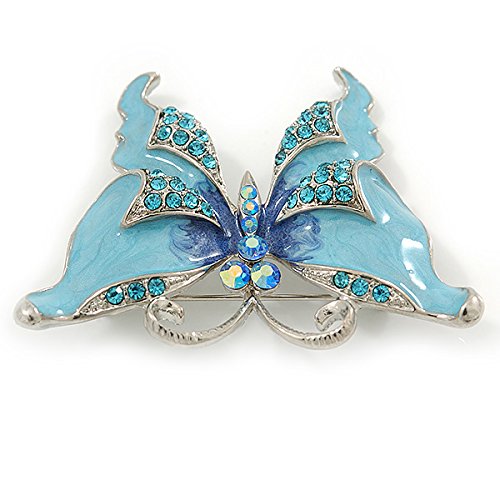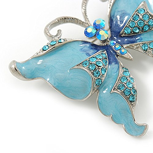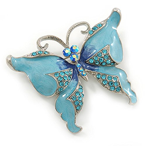 -. Title : Sky Blue Enamel Crystal Butterfly Brooch In Rhodium Plating - 50mm W