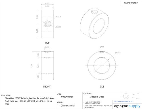 Climax Metal C-068-S Shaft Collar, One Piece, Set Screw Style, Stainless Steel, 11/16" Bore, 1-1/4" OD, 9/16" Width, With 5/16-18 x 1/4 Set Screw