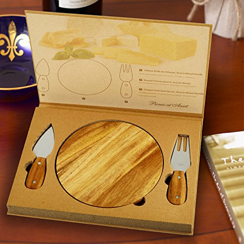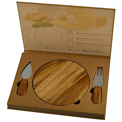 Studio : Picnic at Ascot Publisher : Picnic at Ascot Binding : Kitchen Product Description The Bristol is a high quality Acacia Cheese board with two gourmet cheese tools presented in an attractive gift package. Acacia cheese board measures 7.5" diameter x 0.5" thick. Great for both casual and elegant entertaining with friends and family. 0