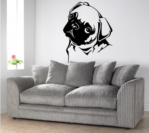-. Title : PUG DOG WALL ART, Sticker, Mural, Giant, Large, Decal, Vinyl (50cm (W) X 61cm (H) - Medium) by Loud Designs