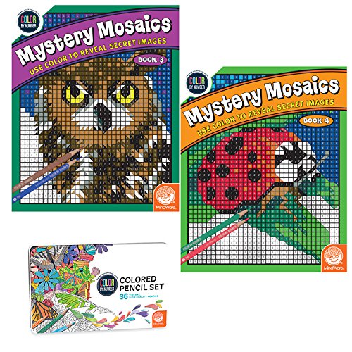 INCLUDES: (1 each) Color by Number Mystery Mosaics: Book 3 & 4 with 36 artist quality colored pencils