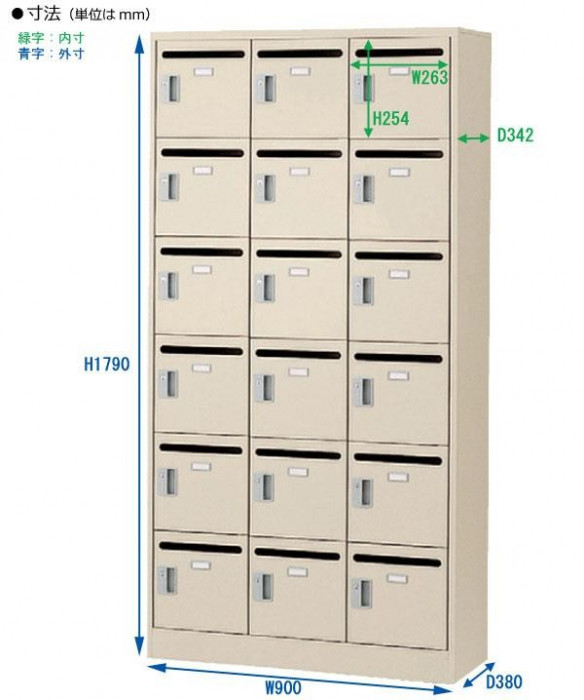 オフィスにぴったりのメールボックスです。天面両側には壁固定用のハーフパンチ加工を施しており壁固定金具(TKU-2/別売)や床固定金具(YKU-2/別売)を使用することで壁や床面に固定し、転倒を防止することができます。環境にやさしい紛体塗装仕上げで、錆びや傷に強いのが特徴です。 |