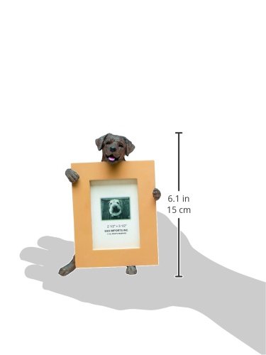 Announcing this year’s best gift for Chocolate Lab lovers everywhere! This unique picture frame stands 6 inches tall, holding a 2.5 x 3.5 inch photo of your favorite furry friend. You can easily personalize the frame to give it that extra special touch. The personality of each Chocolate Lab is truly captured in the unique design. This hand painted frame with intricate detail is the perfect place to put your favorite picture. This frame features a Chocolate Lab hugging the outside of the frame with its hind leg paws as the table topper to hold it up, but is also enhanced with an easel back stand for added security. Look no further for the perfect gift for that pet lover you had in mind because this frame is sure to wow anyone who sees it! It’s a simple yet affectionate gift to brighten any room in your home or office.Feature