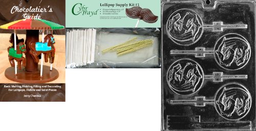 Cybrtrayd Chinese Dragon Lolly Chocolate Candy Mold with Chocolatier's Bundle, Includes 25 Lollipop Sticks, 25 Cello Bags, 25 Gold Twist Ties and Chocolatier's Guide