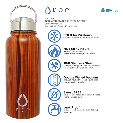 INSULATED TEMPERATURE CONTROL - ROK is a double wall, stainless steel, vacuum insulated water bottle. Forged with high quality 18/8, food grade, stainless steel and most importantly, KORTempTM technology that keeps your beverages icey cold for 24 hours and piping hot for 12 hours.