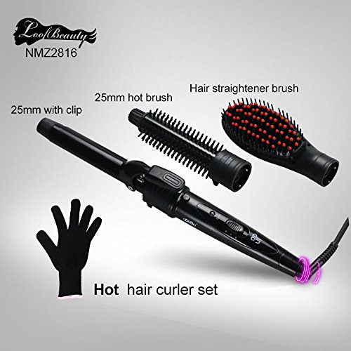 -. Feature : 3in1機能搭載:カールアイロン , ストレート ヘアアイロン, ロールブラシ。 / 素材:PET、PTC発熱材料 / 電源:100-240V / 温度調整:150℃~210℃,LED温度設定1(中間150°C / 300°F),2(高210°C / 410°F) / くせ毛や寝癖をストレートにセットし、早い朝でも自然なヘアスタイルを簡単に楽しめます!オートロック機能や、オートOFF機能もあって安心。
