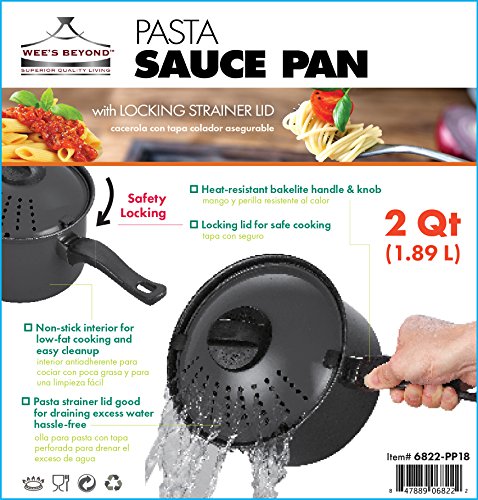 Wee's Beyond pasta pan features Italian style and design on a highly functional pot. Cooking pasta, potatoes or vegetables just became a whole lot safer and easier with Wee's Beyond innovative 2 quart pasta pot featuring a lock lid with a built in strainer.Feature