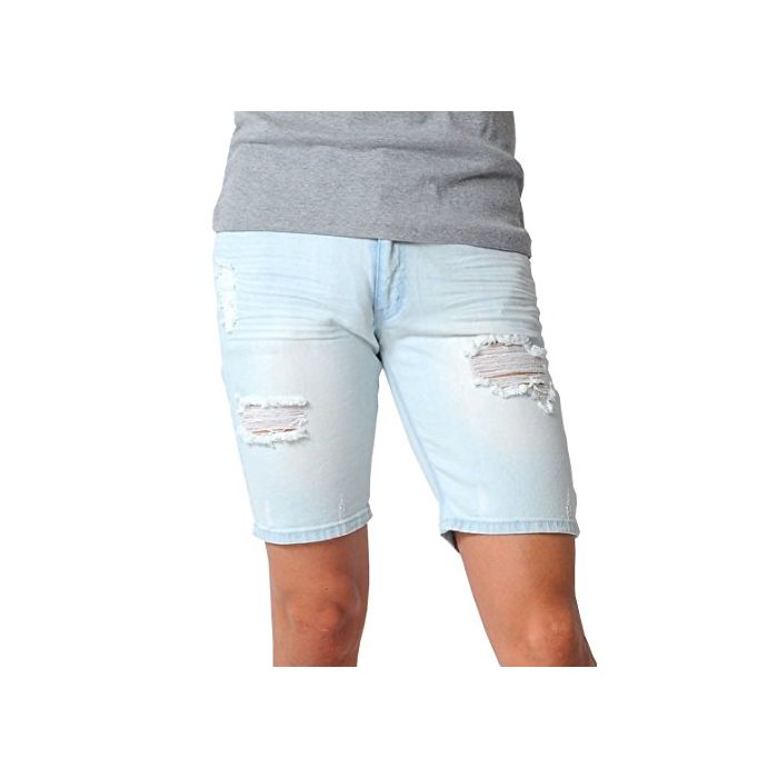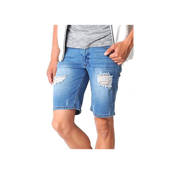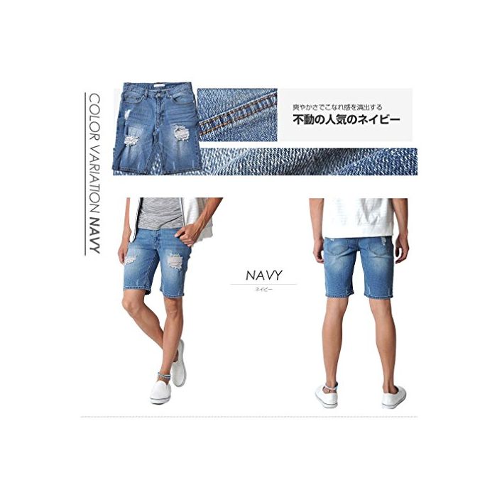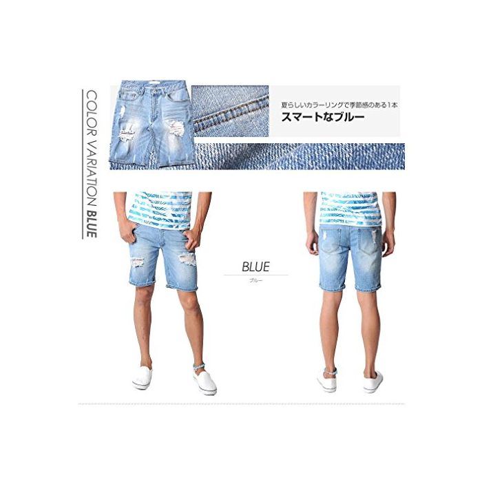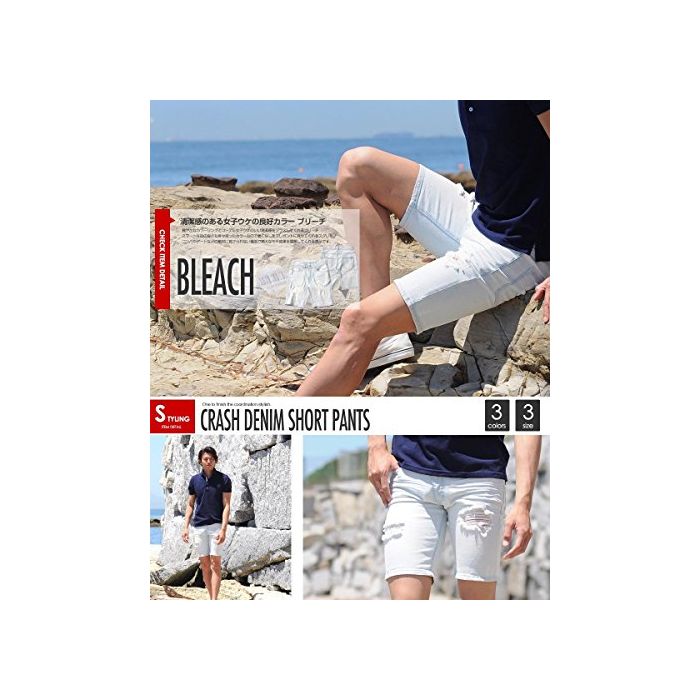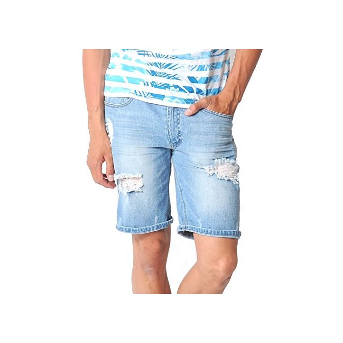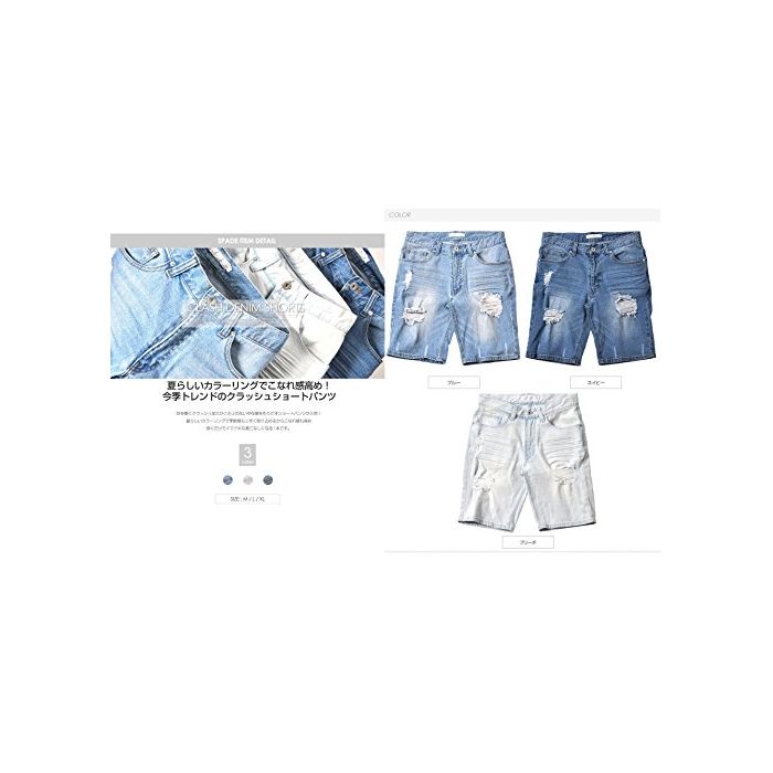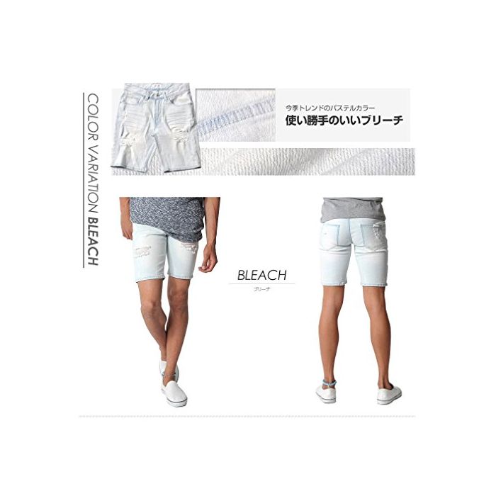 (스페 이 드) SPADE 데님 하프 팬츠 크래쉬 데님 데미지 숏 팬츠 데님 【e164】 (XL,블리치)