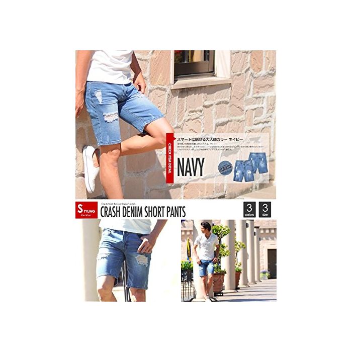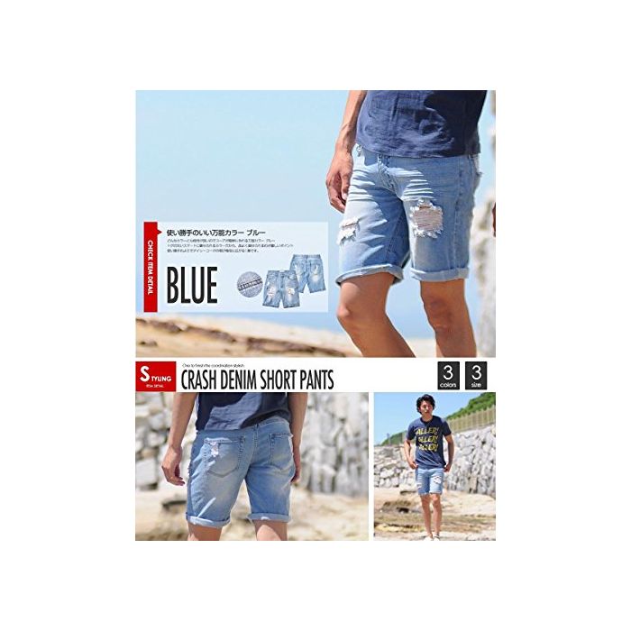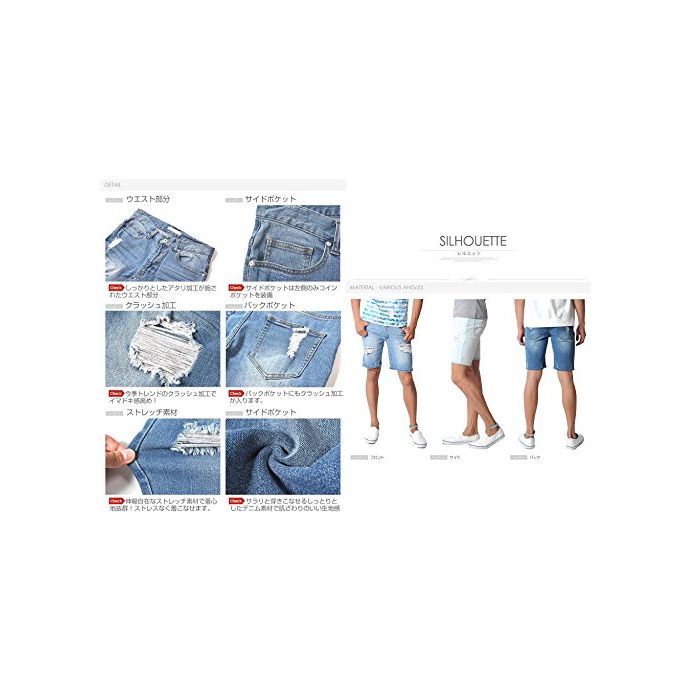 원본상품명: (スペイド) SPADE デニムハフパンツ クラッシュデニム ダメジ ショトパンツ デニム 【e164】