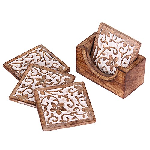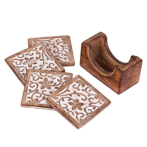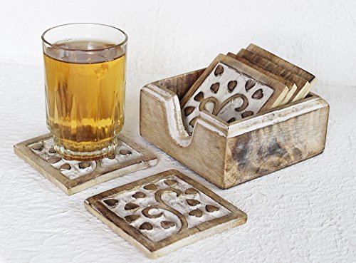 -. Brand : The StoreKing -. ProductGroup : Kitchen -. ProductTypeName : KITCHEN -. Title : Christmas Gifts Handmade Set of 6 Wooden Coasters for Drink Tea Coffee Table White Distressed Coaster with Holder Stand Dining Home Décor
