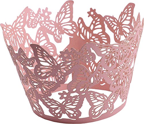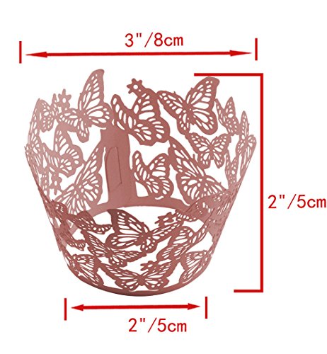 DriewWedding 50PCs Butterfly Patter Hollow Artistic Bake Cake Cupcake Wrappers Paper Cups Liner for Wedding Birthday Tea Party Baby Shower Food Decoration (Pink)
