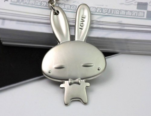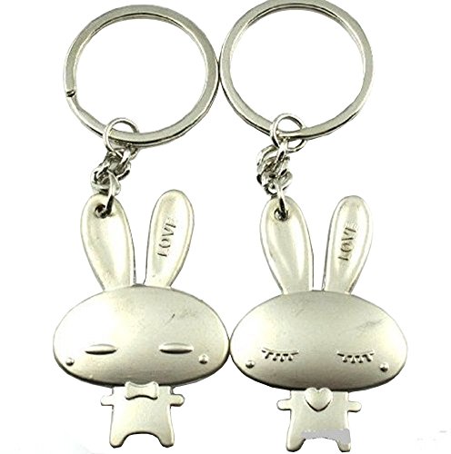 4EVER (Gift Box Packaged & Greeting Card) Lovely Cute Romantic Rabbit Pet Couple Keychain Sweetheart Pendant Lovers Key Ring Key Chain Best Gift for Easter Valentine's Day Wedding Anniversary (A Pair)