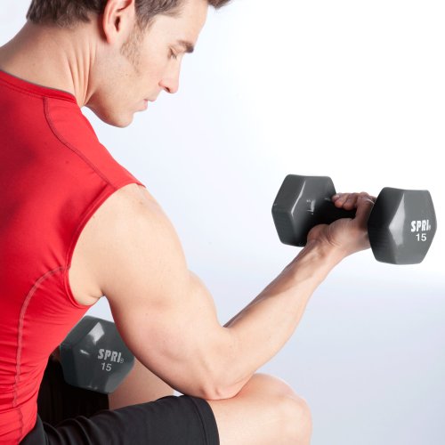 SPRI Vinyl Dumbbells, Set of 2, 15-Pound (Dark Grey)