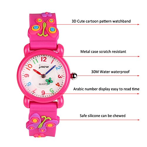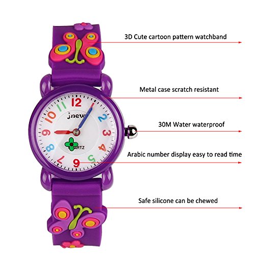 -. Feature : 【COMFORTABLE & UNIQUE DESIGN】High quality Kid watches silicone strap, It uses healthy environmental protection material, comfortable and environmental friendly through international CE certification. With 3D cartoon design, every watch has their unique style. Each cartoon image is lively and interesting which make kids look more vigorous. / 【POWER BATTERY】Each Kid's watches use Japanese movement, provided precise and accurate time keeping. Japanese battery which can provide the watch strong power. Different from other similar cheap watches, so each watches will have a long time to accompany the child grow up. Note: Each watch have a stopper(Which saver battery power) before using the watches and you need to remove the stopper to make the watches working. / 【WATER RESISTANT】The Children's Cute watches is Water resistant to 30 m (99 ft), meet daily Use. Water resistant but not suitable for swimming. In general, withstands splashes or brief immersion in water. NOTE: Please DO NOT press any buttons in the water or wear this watch for longtime underwater activities - such as diving, ect. Too much water contact or usage in extreme Hot or Cold temperature will shorter watch life. / 【SHOCK RESISTANT】The Excellent Metal Steel case and Stainless Steel case back which enable the watch to be tough and durable. The glass is made from the highly clear resin material imported abroad and sealed with the case by high frequency machine. So that the glass is extremely hard and pressure-tolerant.So Kids can enjoy Playing, Have fun. / 【FREE GIFT BOX READY AS GIFTS】We strongly recommend it for young Kids 2-10 years old. If Your child is learning how to read time or understand how to tell time in a fun and engaging world effective, Or whose sense of fashion and fun, time collection that help kids develop the good habit of valuing time . This must a very cute and useful gift ! We promise that offer BEST SERVICE and QUALITY. Order now and enjoy 100% MONEY BACK GUARANTEE and WARRANTY within 30days if you contact seller.