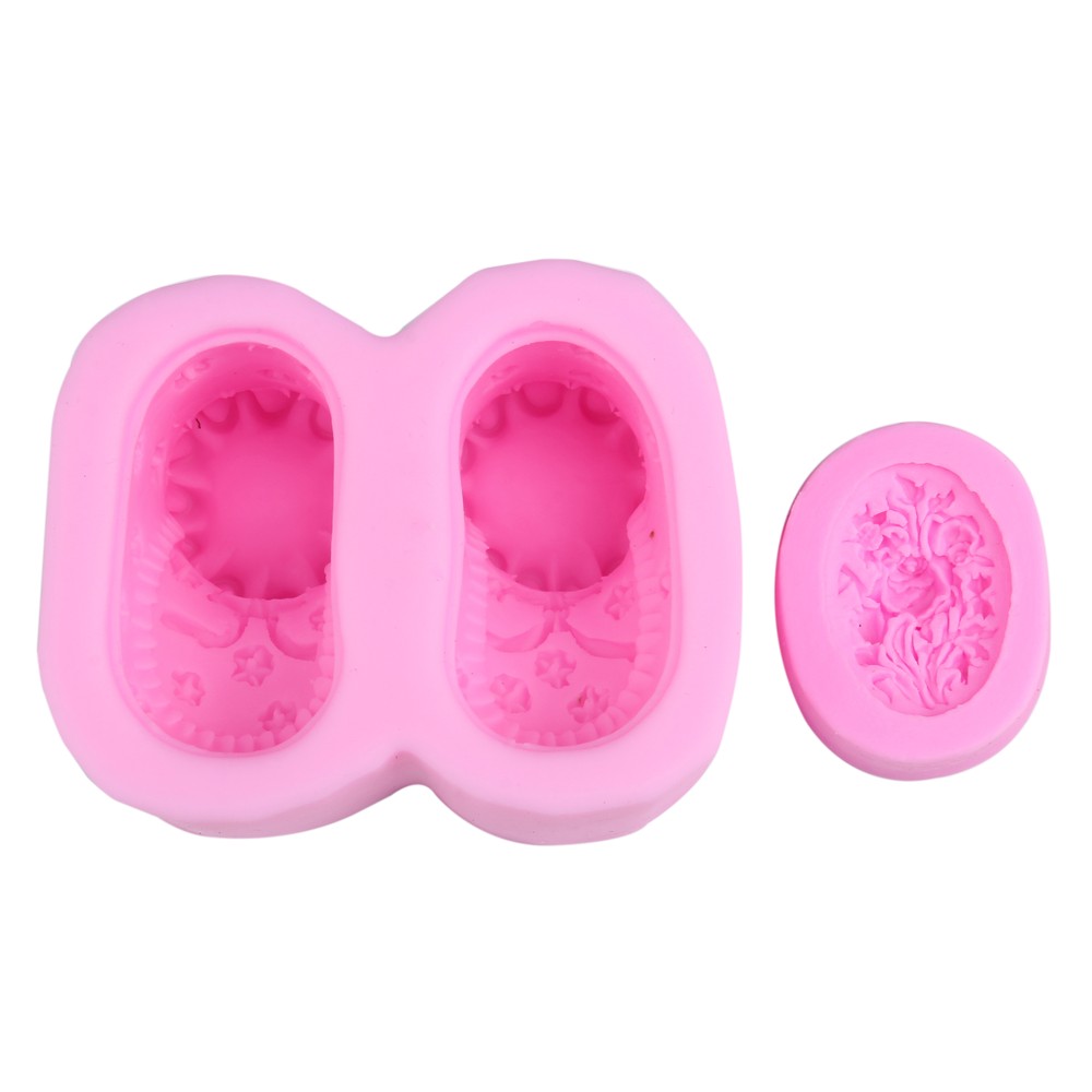 2個セット 赤ちゃん の 靴 と 薔薇 バラ シリコンモールド 手作り 石鹸 キャンドル 粘土 レジン シリコン モールド 型 細工道具 8本付