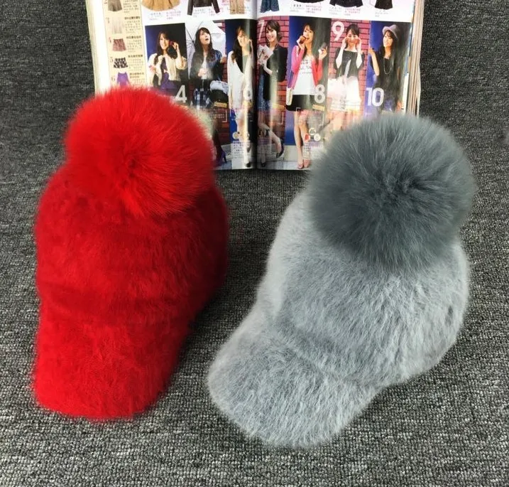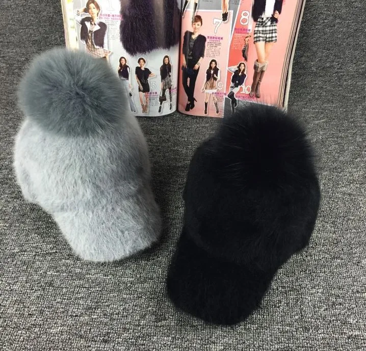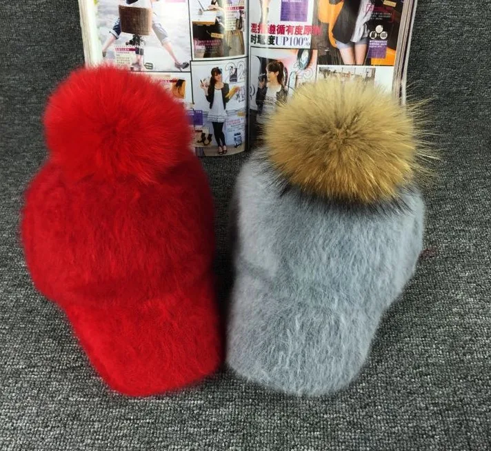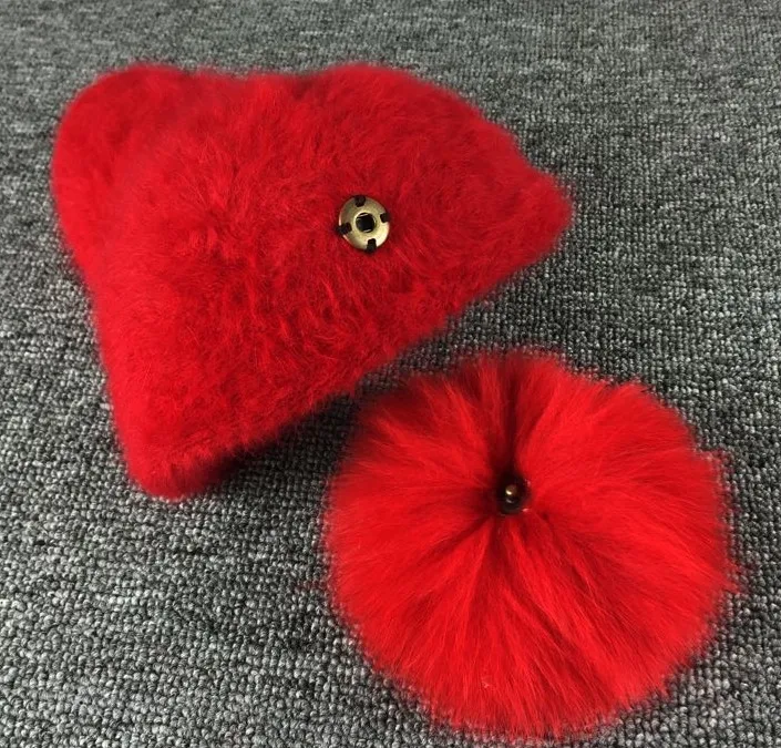 Material: rabbit hair blended Feature: Large fur pom pom Color: Black,Gray,Red