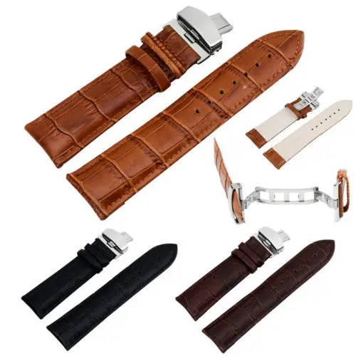 | [해외]시계 액세서리 hq 스테인레스 스틸 나비 디플로 버클 버클 + 최고 가죽 시계 밴드 스트랩 시간 pulseras 드 cuero |