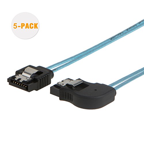 SATA III Cable, CableCreation [5-Pack] 18-inch SATA III 6.0 Gbps 7pin Female to Right Angle Female Data Cable with Locking Latch, Blue
