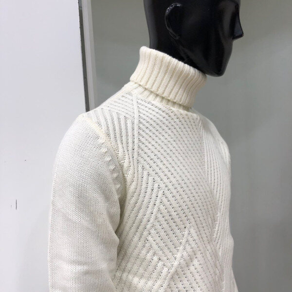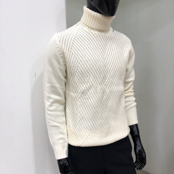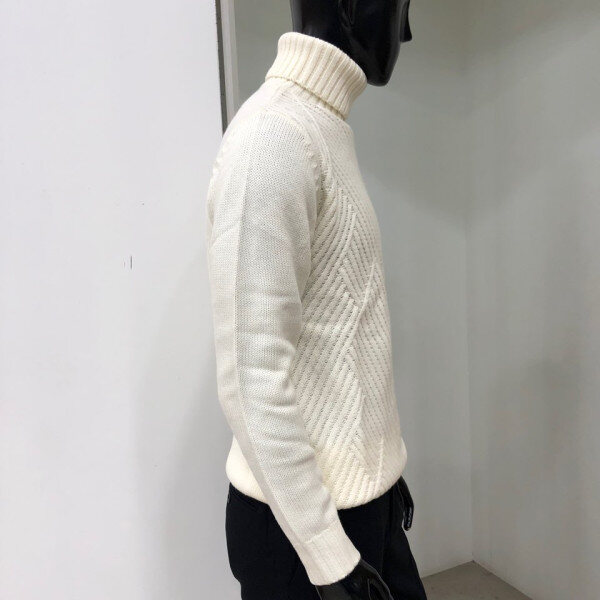 로우 게이지의 앞판 변형 조직의 터틀넥 스타일로 보온성을 높이며 코트 또는 점퍼와 레이어드하셔도 무방한 디자인 입니다.