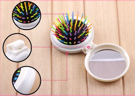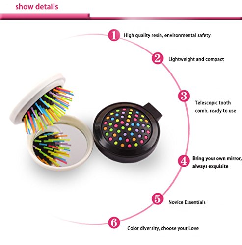 Children and Adults Creative Rainbow Comb Mini Airbag Massage Folding Comb Portable Small Mirror Comb Set Makeup Mirror Pocket Comb Travel Comb...