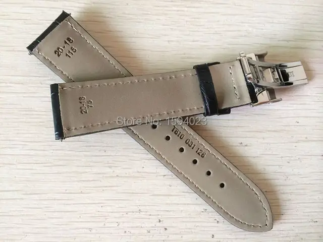 | [해외]20 미리메터 (Buckle18mm) T063617 T063610 높은 품질 실버 나비 버클 + T063639Black 정품 가죽 시계 밴드 스트랩 남성 |