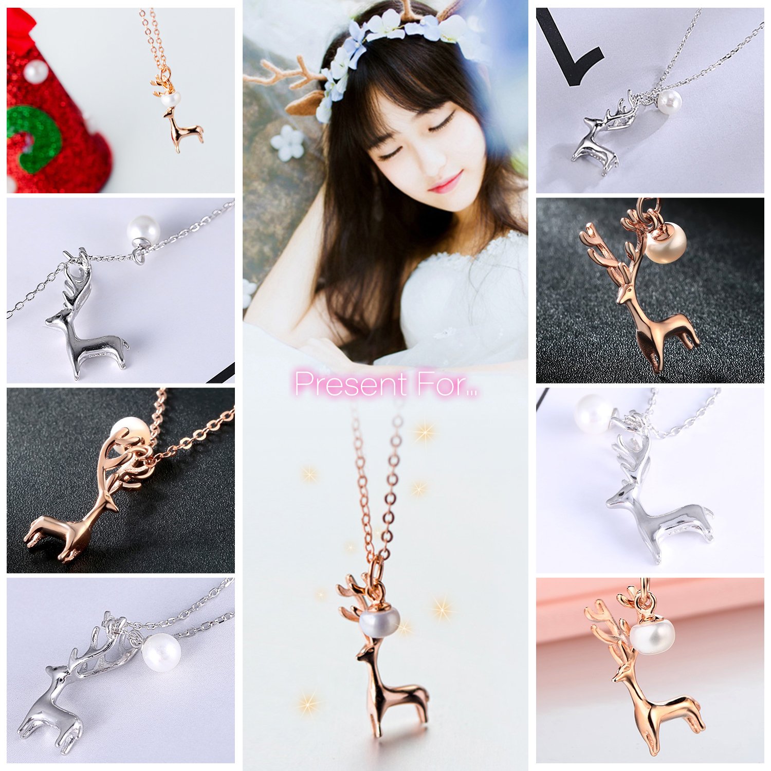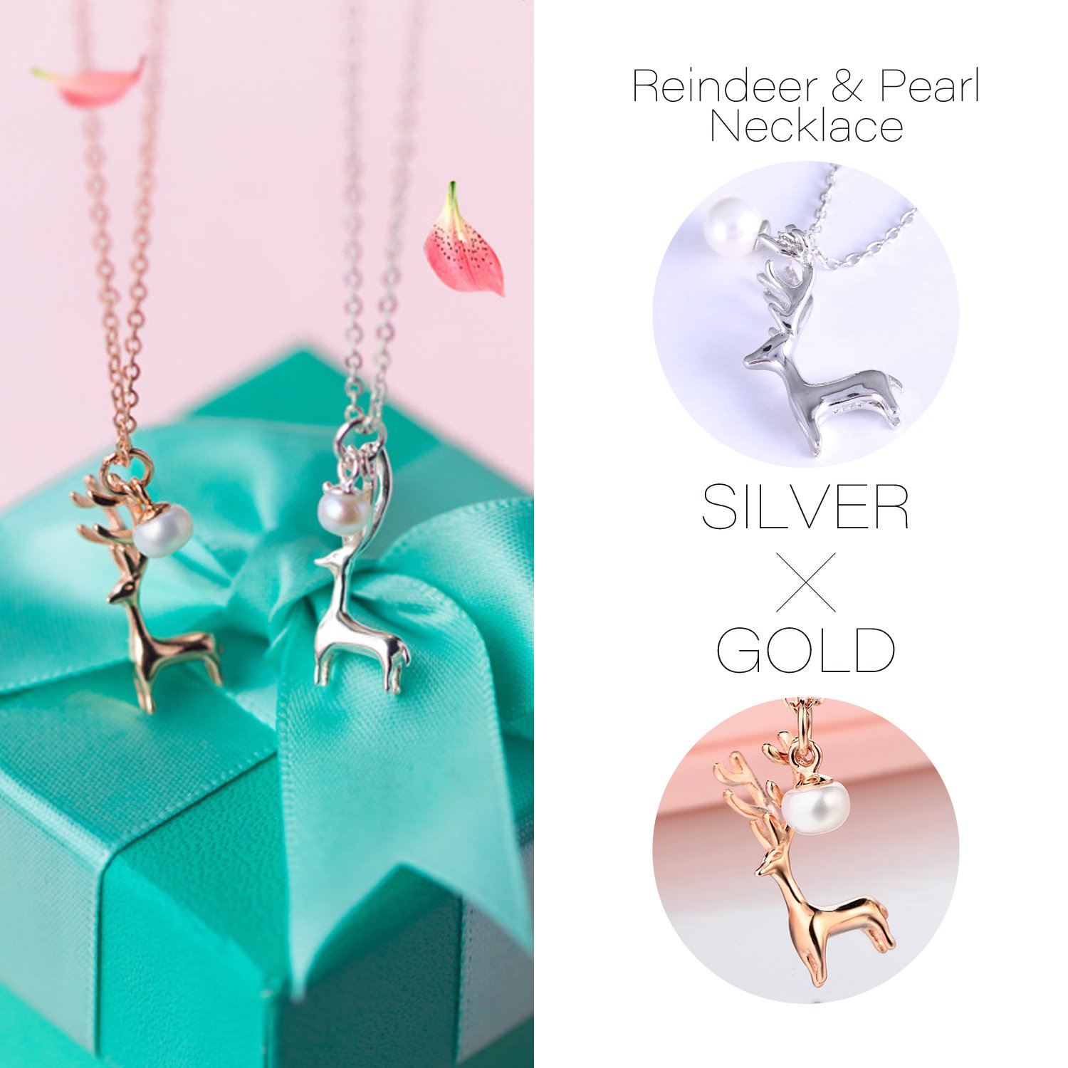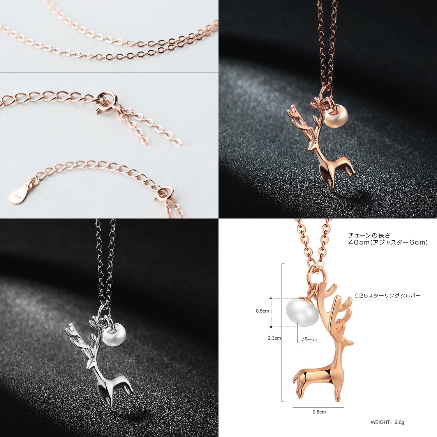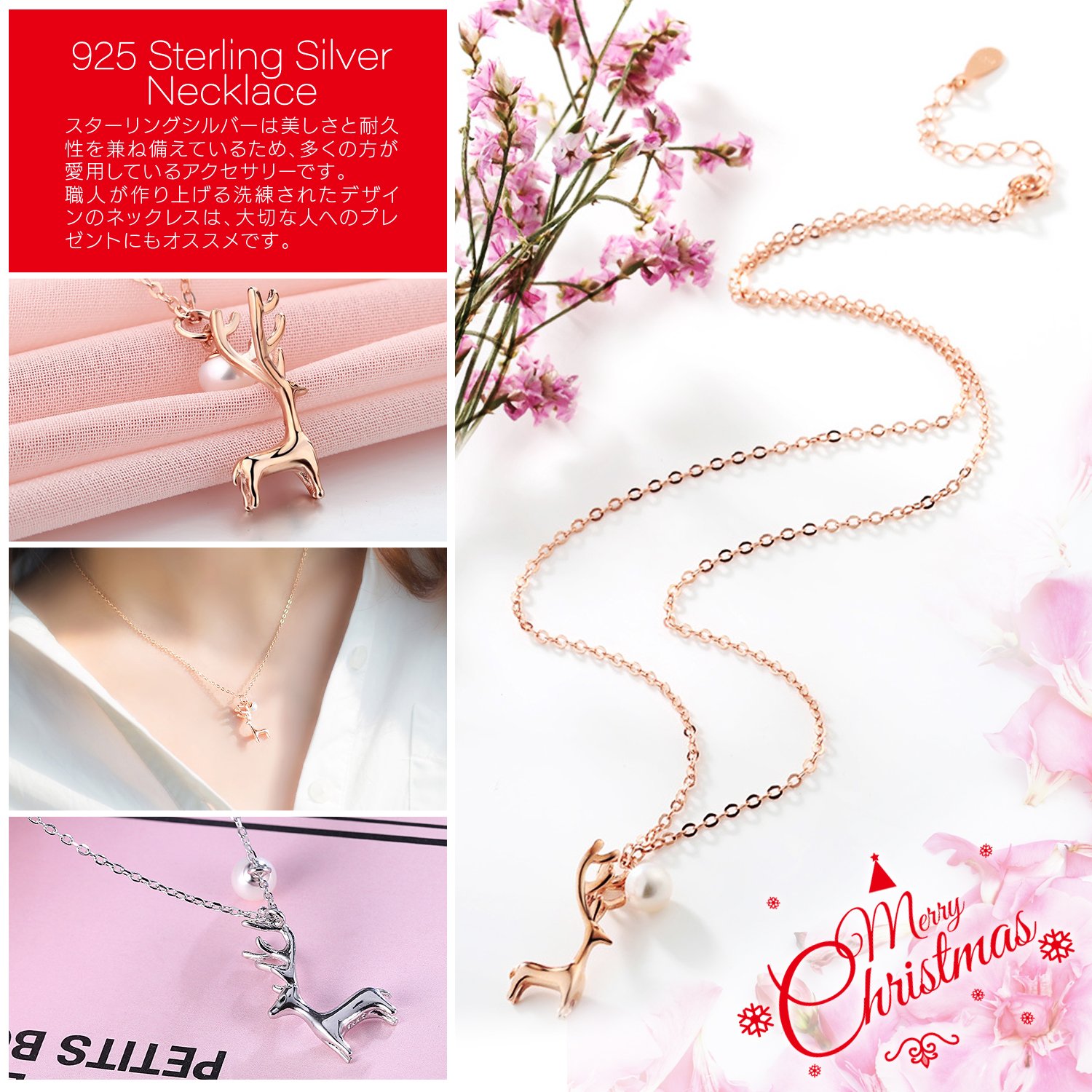 ❤ Reindeer motif necklace suitable for Christmas attire is two types of simple silver and rose gold.