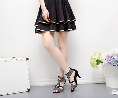 (Minishion)/Women's/Athletic Outdoor/DIRECT FROM USA/Minishion TJ7142 Women's Girls Ankle Strap Zip Satin Latin Dance Sandals Evening Shoes