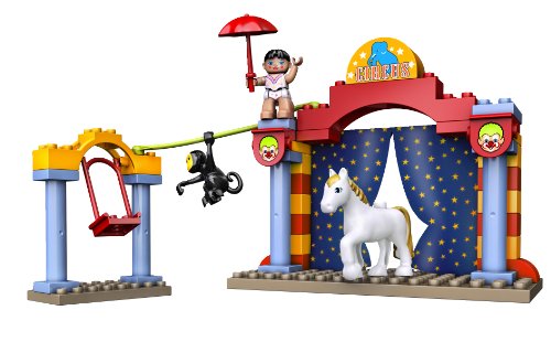 -. Feature : Includes 3 DUPLO® figures: Ringmaster, acrobat and clown / 1 Horse, monkey, lion and elephant also included / Features high wire and swing for acrobat act / Lots of special elements / 61 elements
