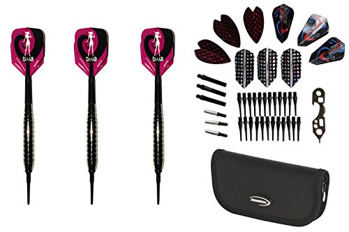 1 Set of 3 AO Nickel 2ba Soft Tip 20 gram Dart Set - Harrows Diva Flight, Case and accessory kit