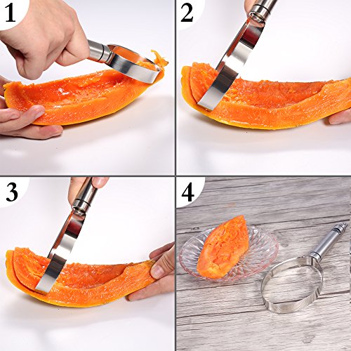 Easy to use. Ergonomic handle to effortlessly remove peel for melon, cantaloupe, honeydew, etc.