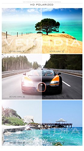 PROFESSIONAL POLAROID LENSES-specialized multi layer lens designed to filter and block over 99.96% of glare - VEITHDIA Polarized lenses blocks out intense horizontal reflections (glare) by having vertically oriented filter layer embedded in the lens, providing maximum comfort and improved visibility. These lens are are tough, lightweight, scratch resistant, and have high optical clarity (distortion free, clear vision)