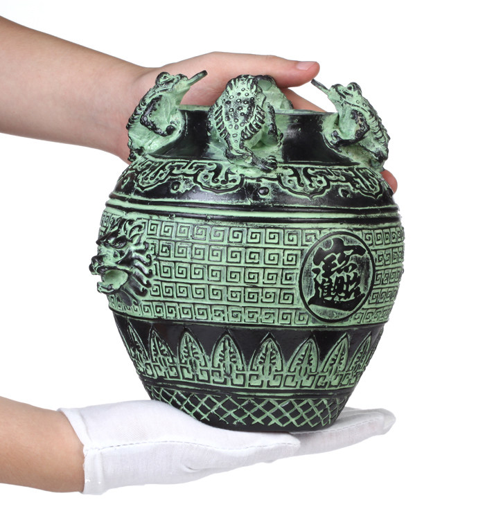 传说金蟾能 口吐金钱,是招财的吉祥物,三足,背上北斗七星,嘴衔金钱,背负铜钱.“凤凰非梧桐不栖,金蟾非财地不居”,三脚金蟾所居之地,都是聚财之宝地,宅内摆放 金蟾,有吸财、吐财、聚财、镇财的作用,是经商最好最能旺财运的吉祥物。神兽嘴衔两串铜钱,所吐的钱便是旺财的,意为“招财进宝、一本万利”!