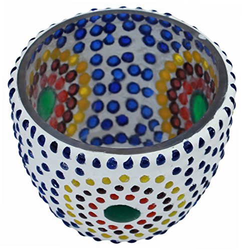 Exquisite big round tealight holder. Handmade in glass mosaic by expert artisans in India