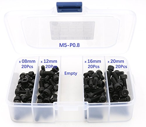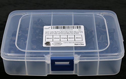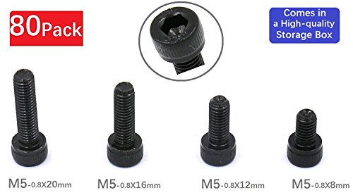 iExcell M5 x 8mm/12mm/16mm/20mm Alloy Steel Hex Socket Head Cap Screws Kit,Black Oxide Finish,DIN912 12.9 Grade, Quantity 80 Pcs