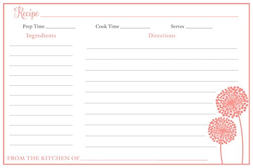 Recipe Cards, Double Sided, 4 x 6, Bridal Shower, Coral, Dandelions, Flowers, Wedding, Set of 24 Printed Cards, Modern Floral Coral
