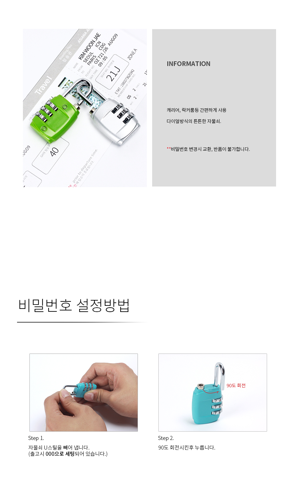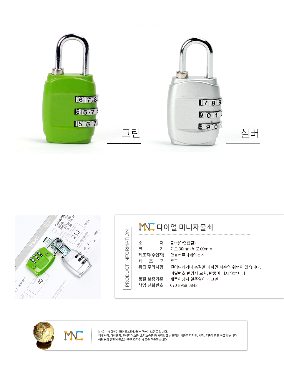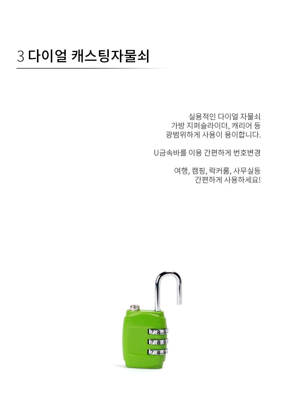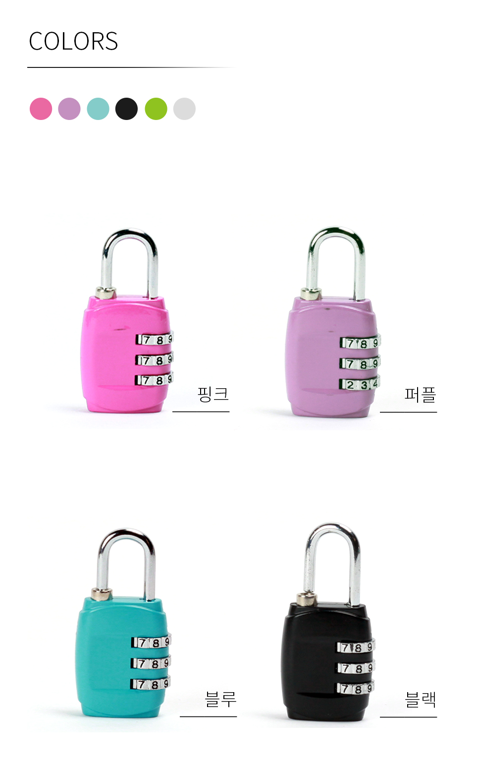 <상품명 : 3단 다이얼 컬러자물쇠 캐리어자물쇠>