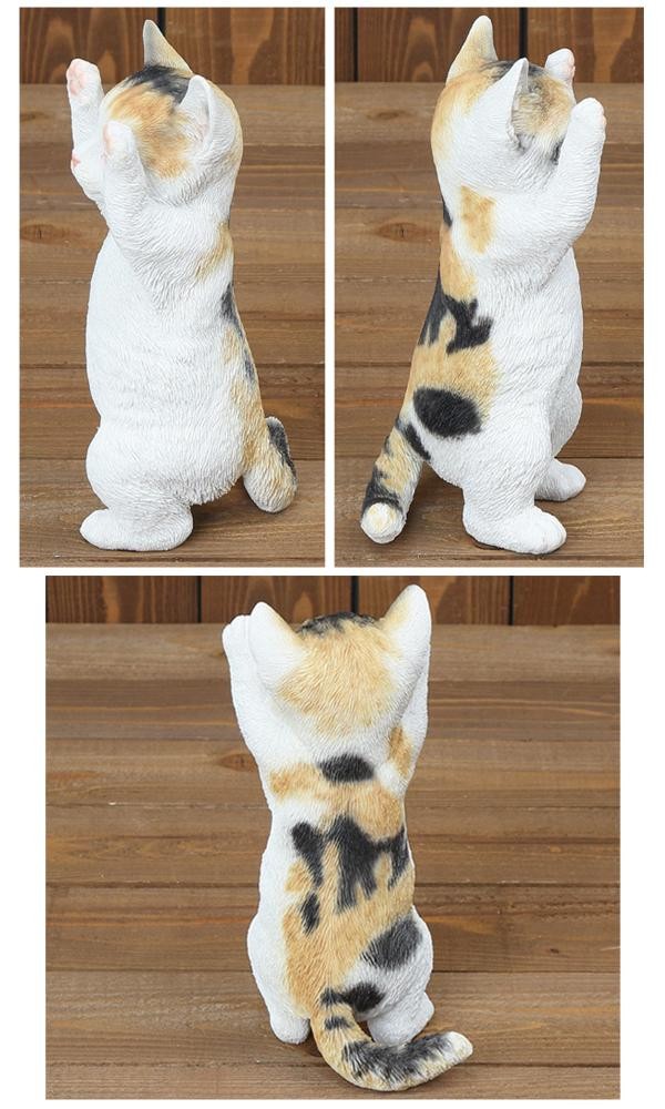 両手を上げる姿が可愛い、ねこのオブジェです。リビングや玄関先、屋外のインテリアにぴったり♪きれいな仕上げで、まるで生きているかのような、愛らしい仕草や表情が特徴です。 |
