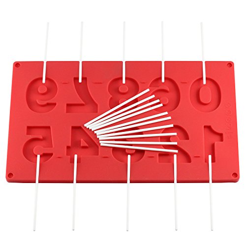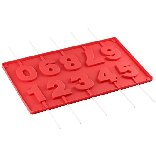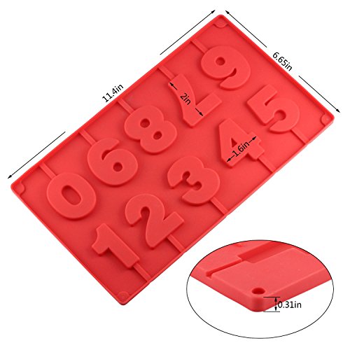 Mujaing 10-Capacity Number Silicone Lollipop Baking Hard Candy Molds