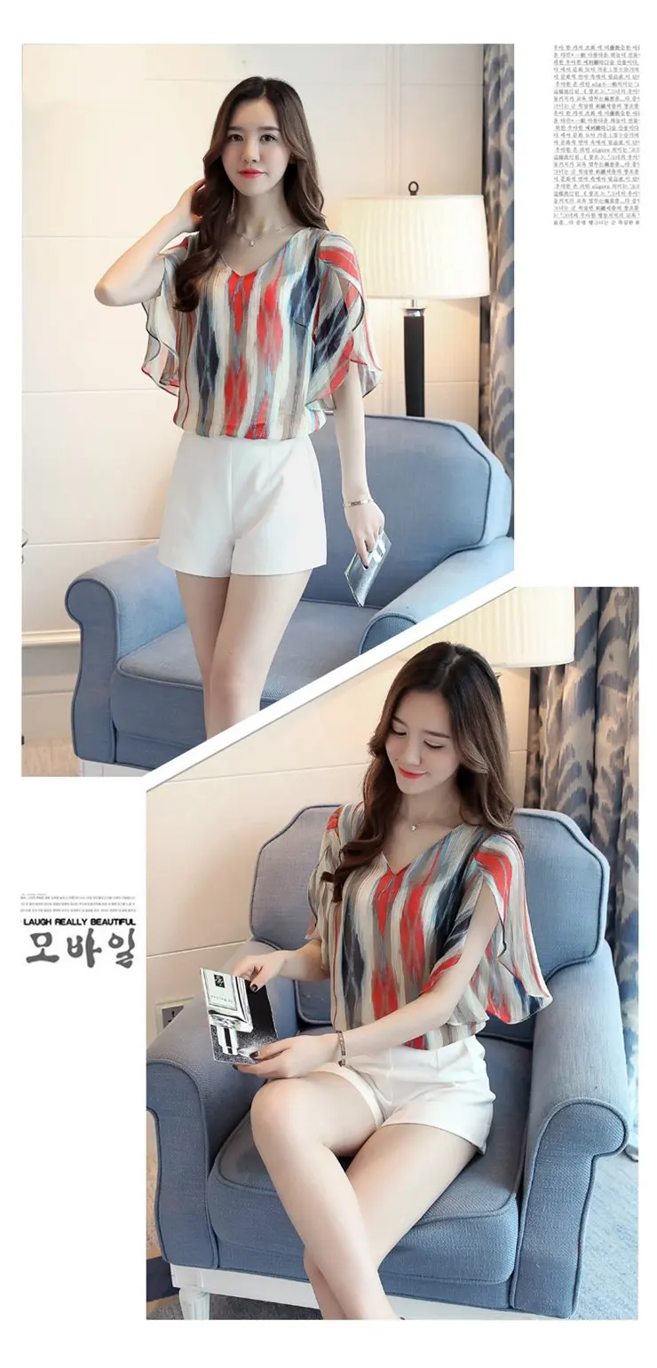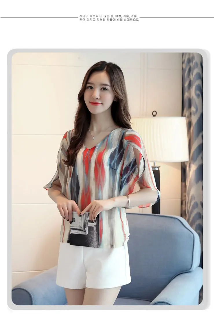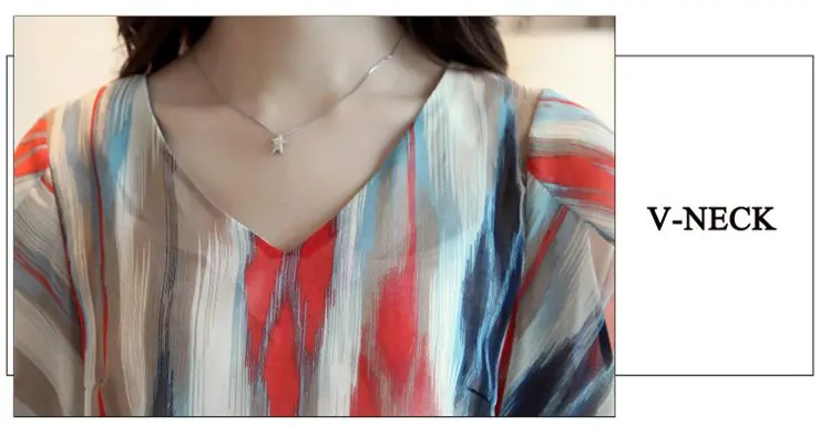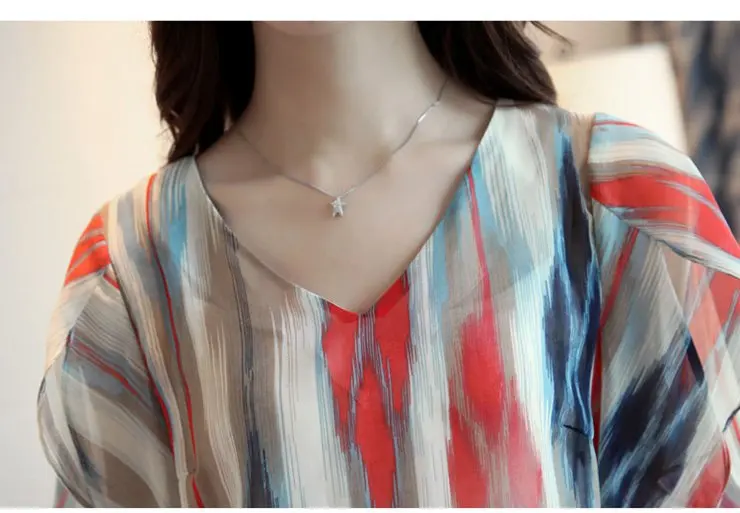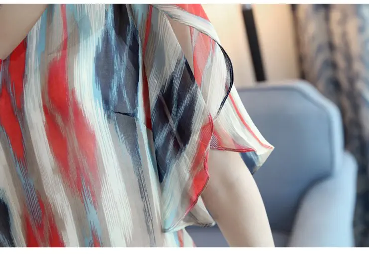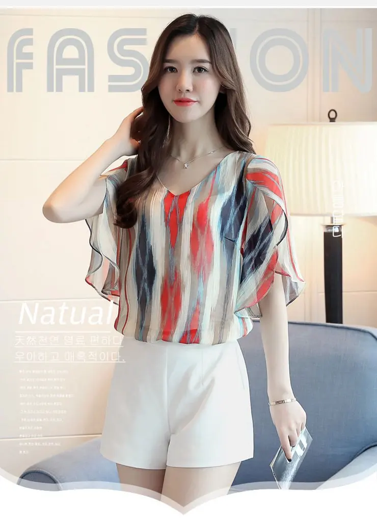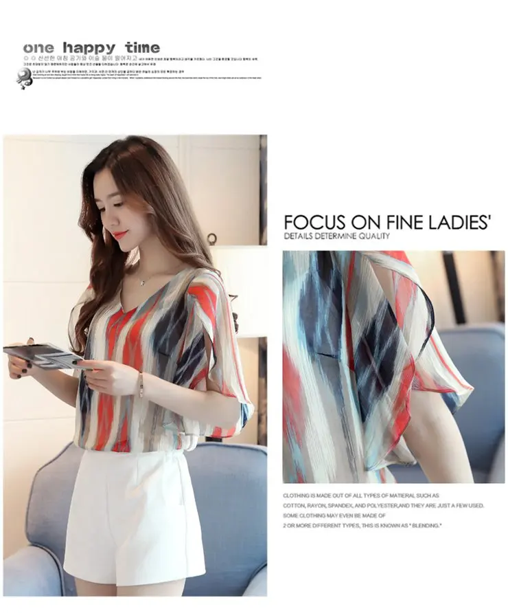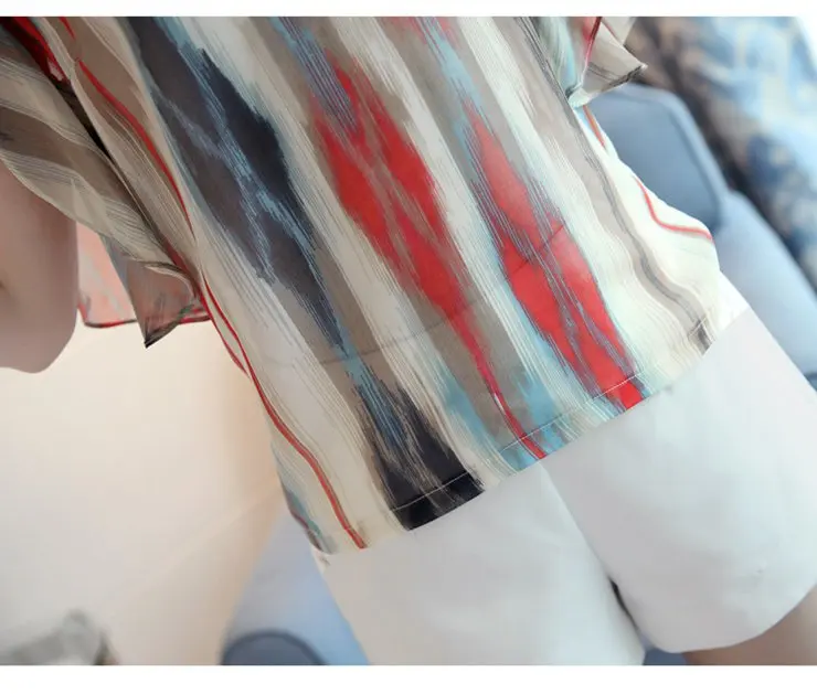 :Women Chiffon Blouses Summer Color Striped Print Tops