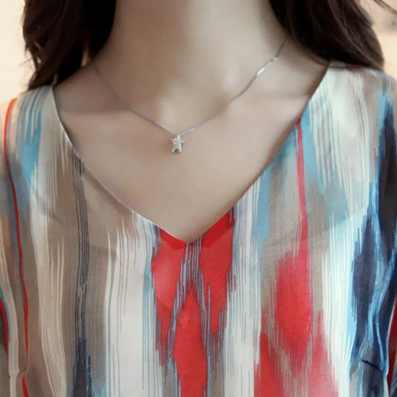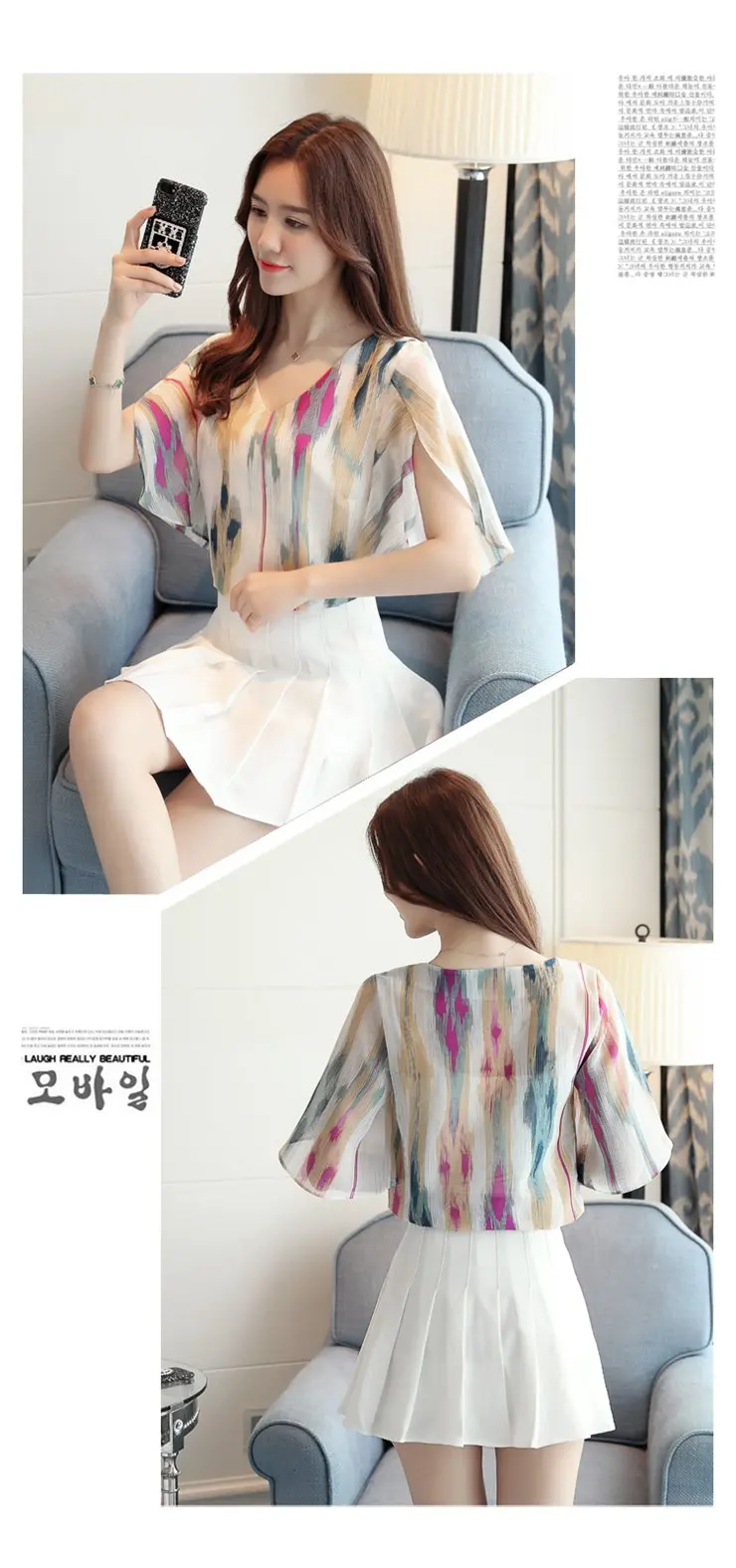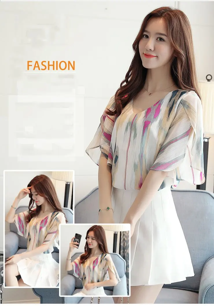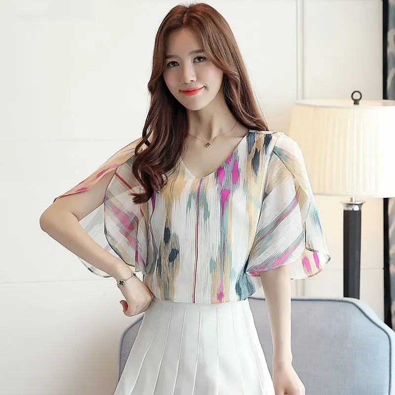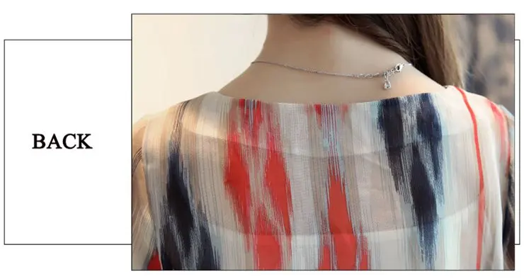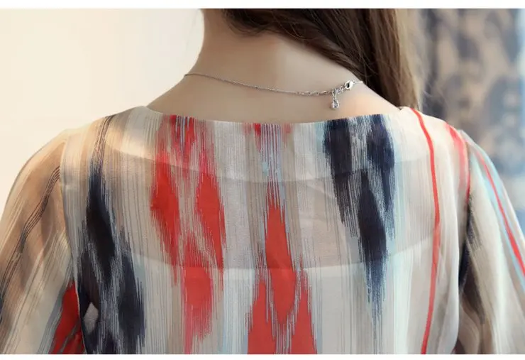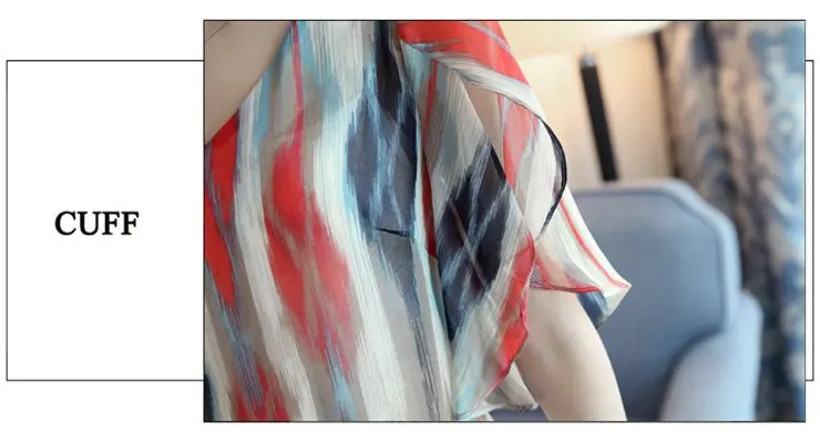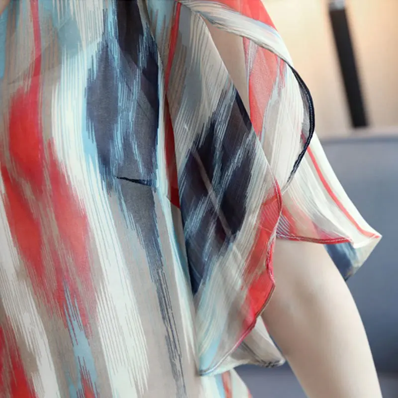 :Women Chiffon Blouses Summer Color Striped Print Tops