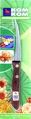 - Feature : Curved Blade Fruit Carving Knife, Wooden Handle, 001A. / The longer curved blade makes this sharp seeding knife ideal for fruit and vegetable carving. / Seeding knives are used to prepare the vegetable and fruits for carving. / Manufactured by the Kom Kom, these knives are top quality and reasonably priced. / Long-lasting wood handle, high carbon stainless steel blade hardened and tempered
