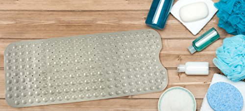 Non-Slip Clear PVC Bathtub Mat - Anti-Slip Anti-Bacterial Extra Long Shower Mat 16 x 38 Inch - Grey - by Utopia Home