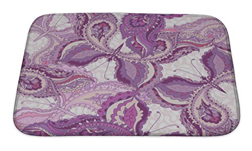 Gear New No Slip Microfiber Memory Foam Pattern with Violet Butterflies Bath Rug Mat, 24" X 17"