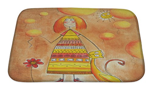 Gear New No Slip Microfiber Memory Foam Happy Girl with Cat Childs Drawing Watercolor Painting on Paper Bath Rug Mat, 24" X 17"