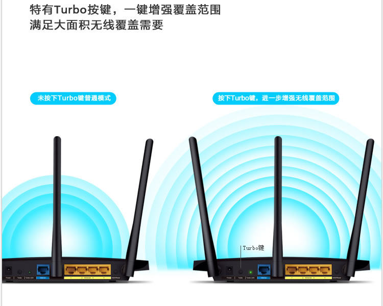 A2, pressing the turbo button, the wireless transmit power is increased 6db, theory wireless system, the transmission distance and transmission power, antenna gain and path loss of the reception sensitivity related to increase or decrease the overall gain of each 6dB, the transmission distance can be extended or shortened double but the practical effects of the specific use of the environment. If the original wireless signal is very weak case, press the turbo button to use the results would not be significantly improved.